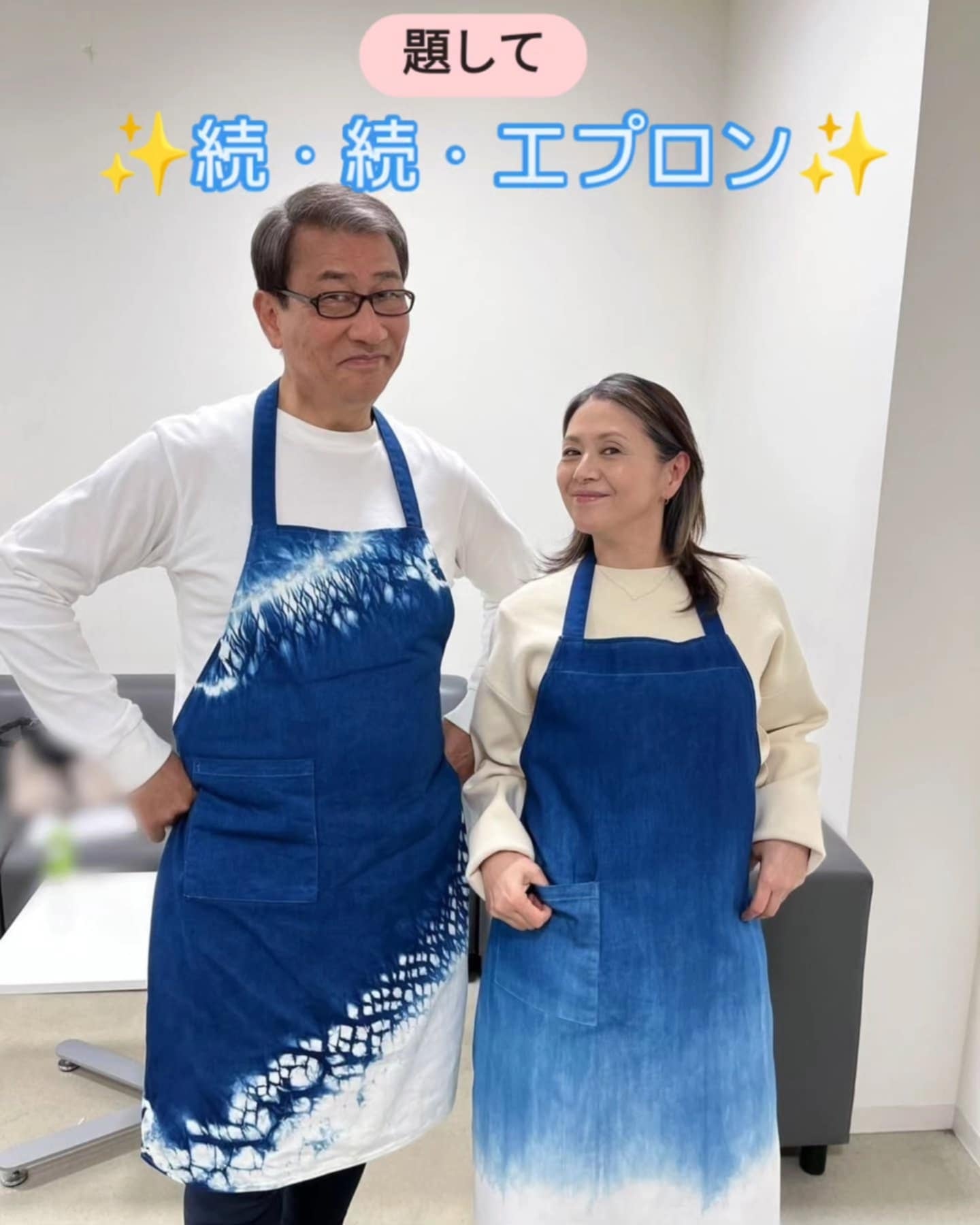 ドラマでは中井貴一さんが伊勢藍エプロンを纏ってくださっておりますが、もちろん小泉今日子さんにも撮影関係なく、Instagramの写真で纏ってくださっております伊勢藍エプロン(グラデーションバージョン)をプレゼントさせていただきました。