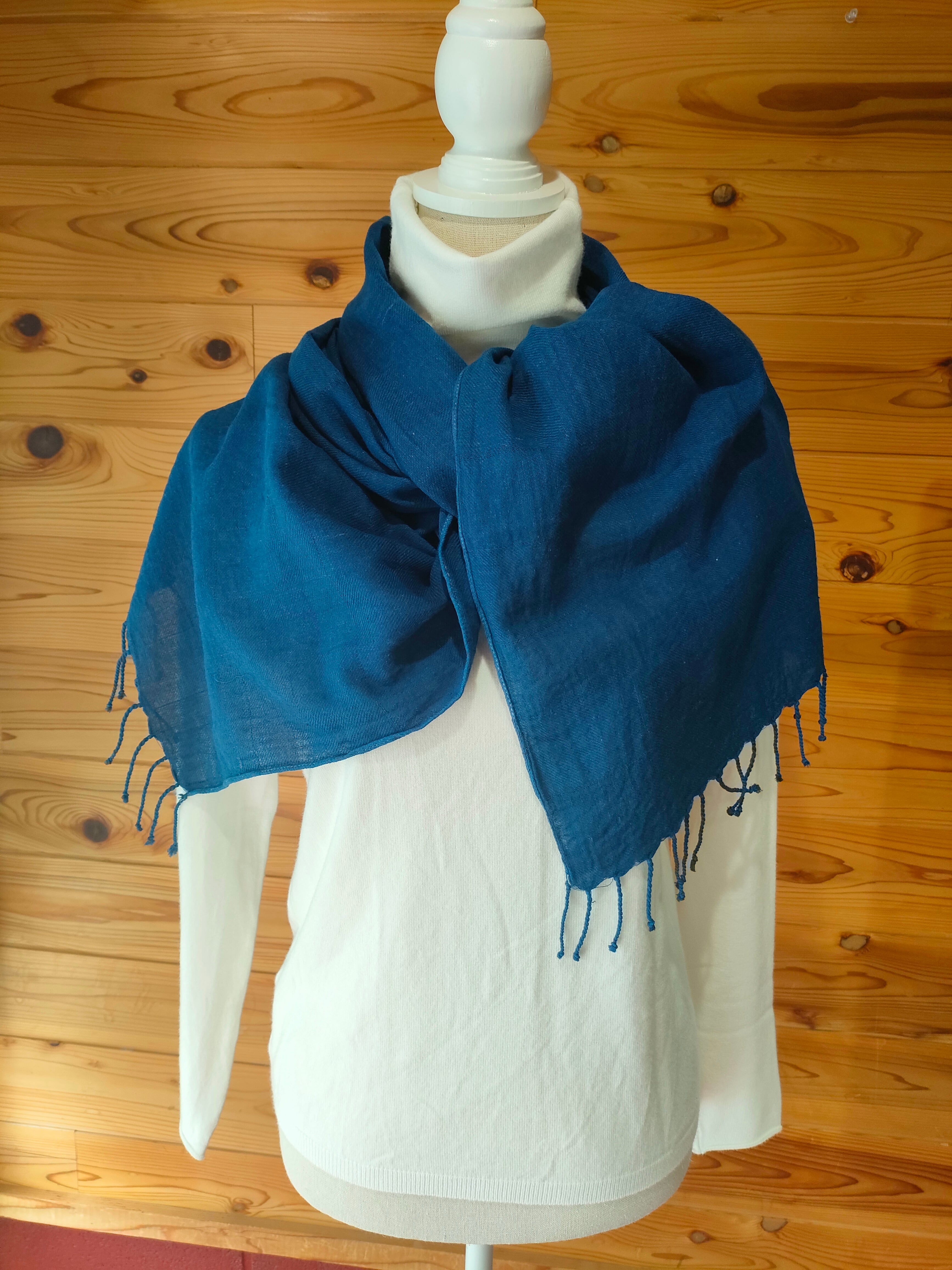 ◆コットン チェック織り柄 大判ストール◆ ~100%オーガニックすくも使用 醗酵建て伊勢藍染~