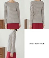クルーネックに比べ、ボートネックはフェミニンさが増しますので、女性らしさのアップに繋がるのも魅力ですね♪