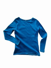 こちらの商品は首元がボートネックで、素材は伸縮性のあるリブ素材のTシャツになります。