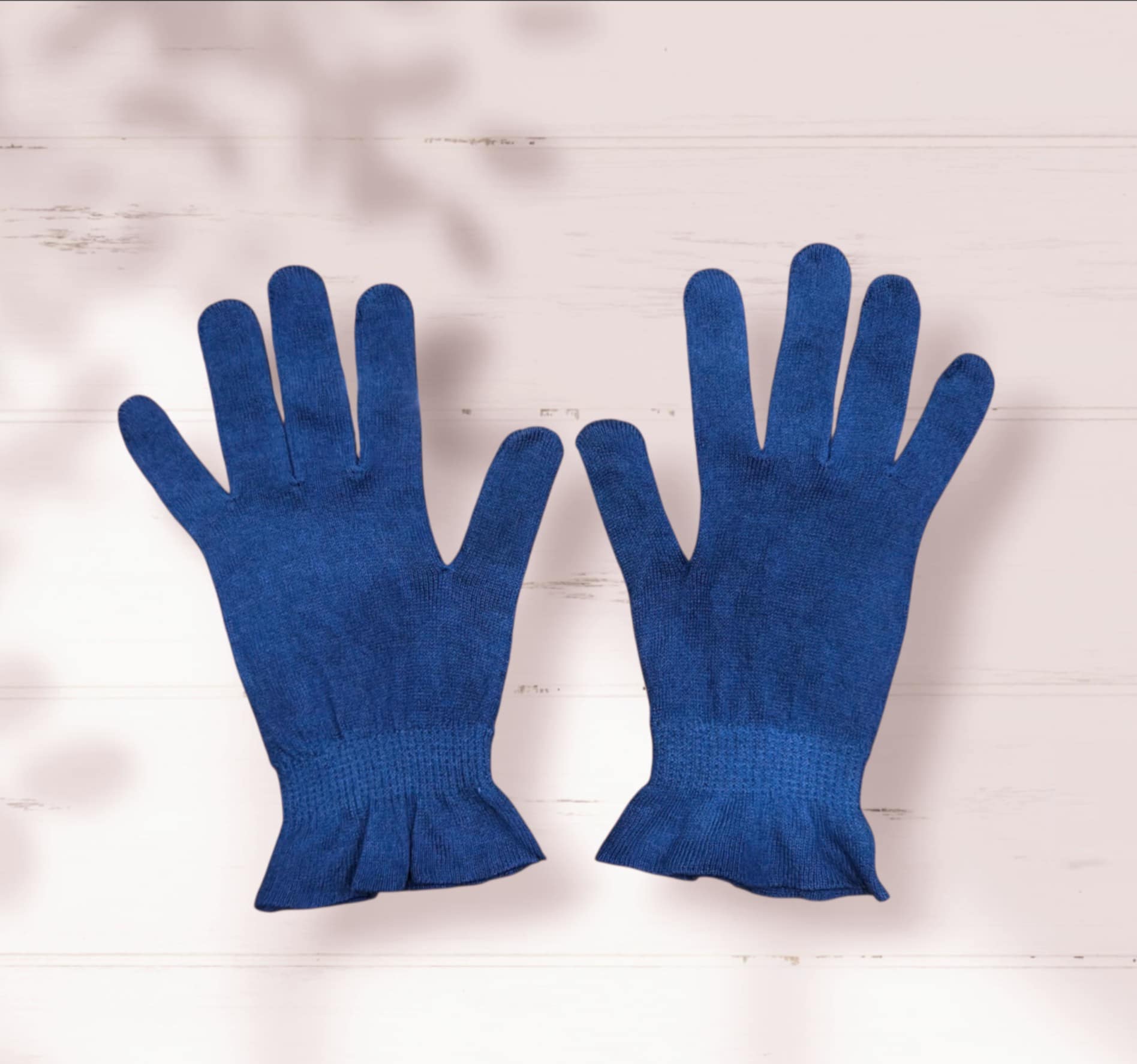 こちらはやわらか~いオーガニックコットン100%の手袋に『オーガニック伊勢藍』を施した商品となります。
