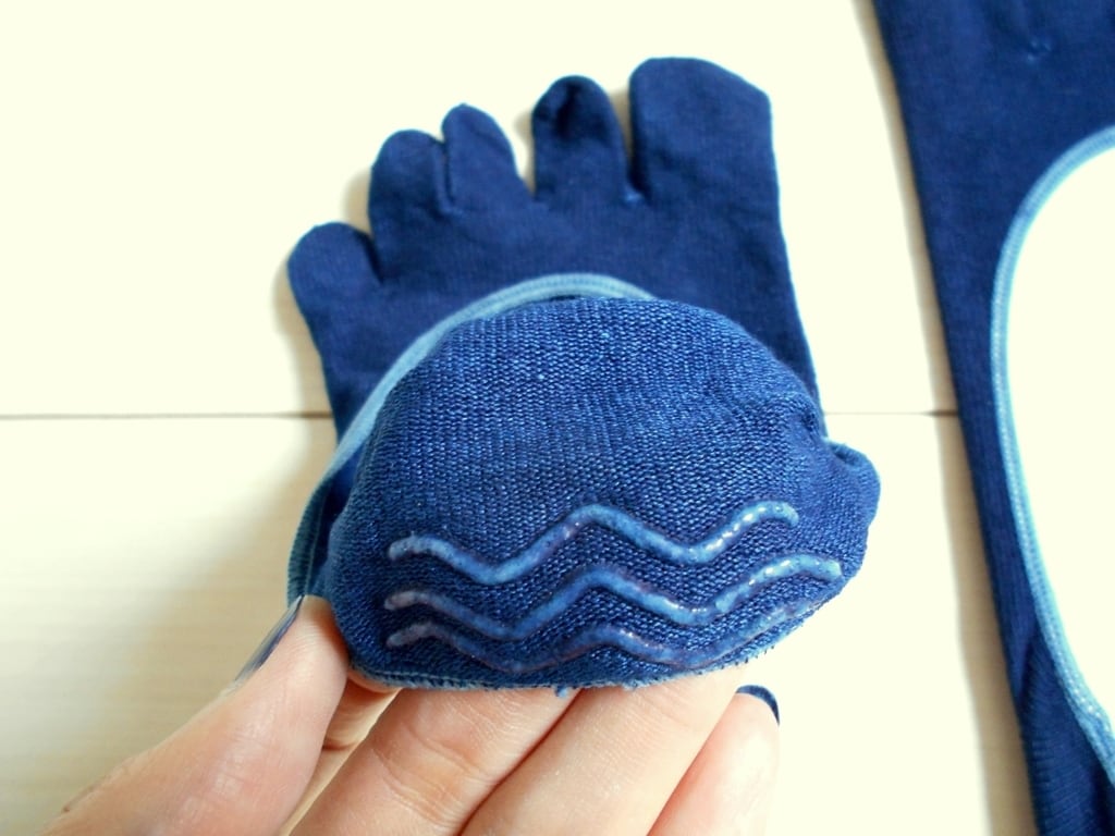 ですので、長く履いていると、どうしても藍が摩擦で剥がれ、靴下の底が白くなります。