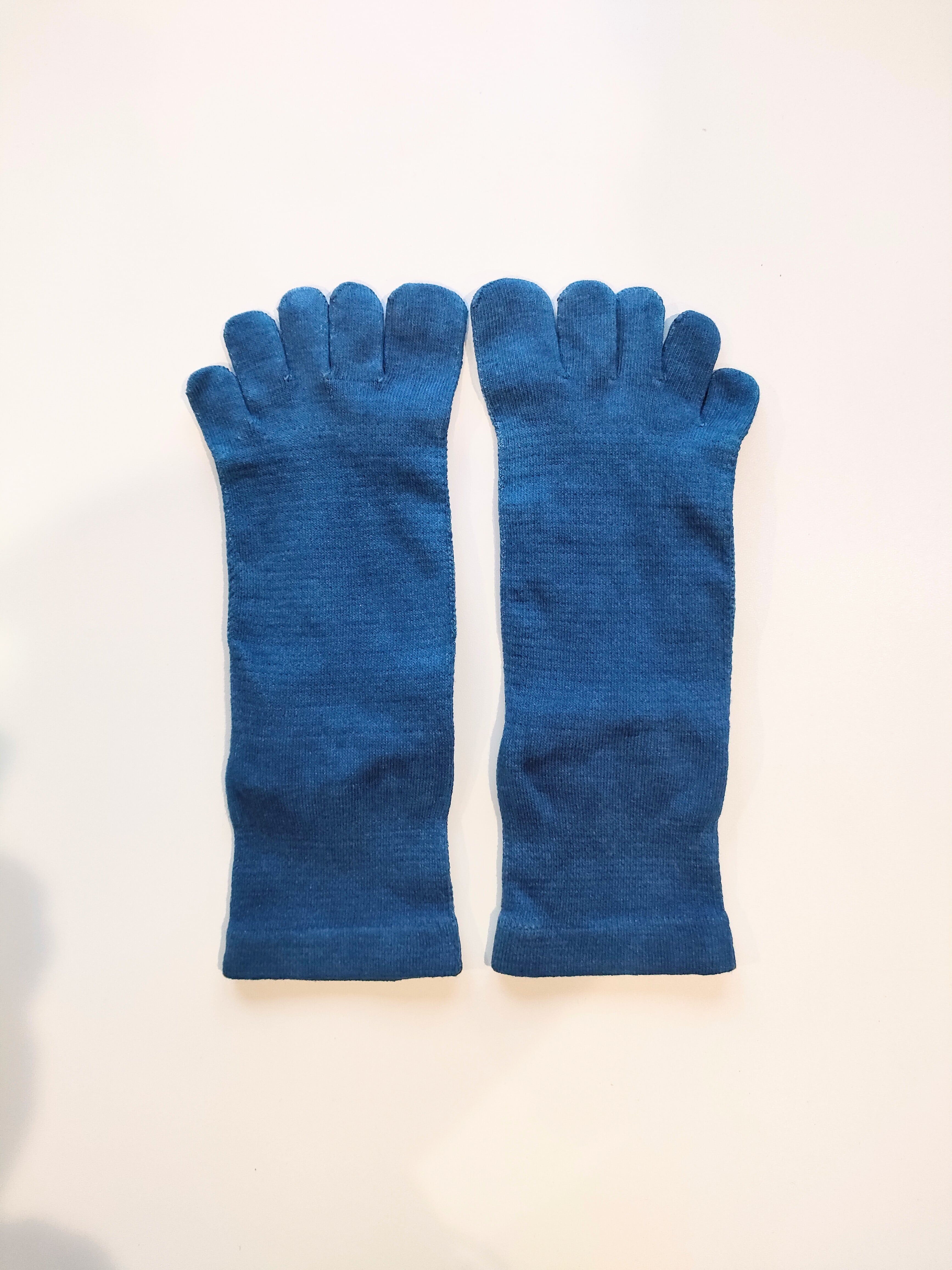 ◆ワイルドシルク&オーガニックコットン5本指靴下◆ ~100%オーガニックすくも使用 醗酵建て伊勢藍染~