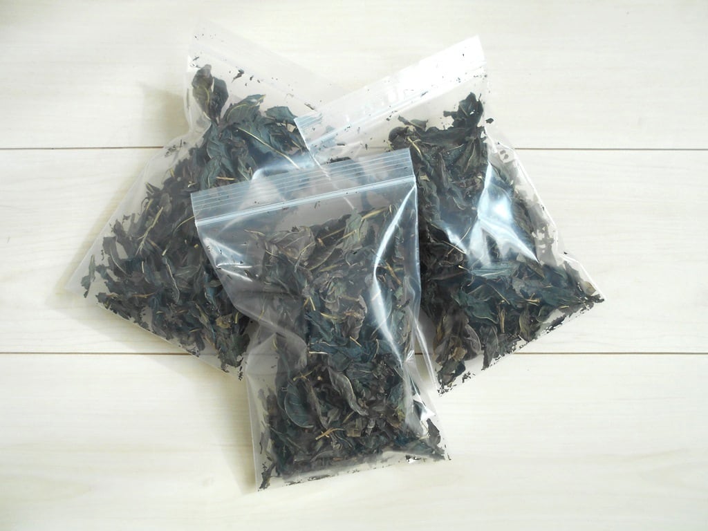 藍の乾燥葉をお茶パックに入れ少し揉みます。