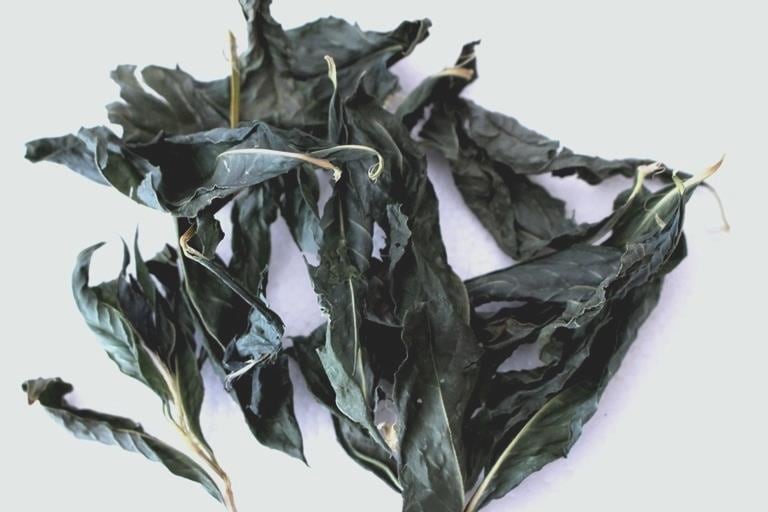 無農薬・無肥料の自然栽培の藍を手摘みで刈り取り、天日干しで完全乾燥させた藍の葉です。