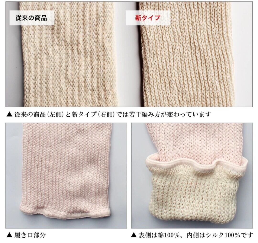※肌に触れる面が吸放湿性に優れたシルク100%、外側は吸水性のあるコットン100%の二重構造なので蒸れにくく、体の熱を逃がさないので保湿&保温力は抜群!