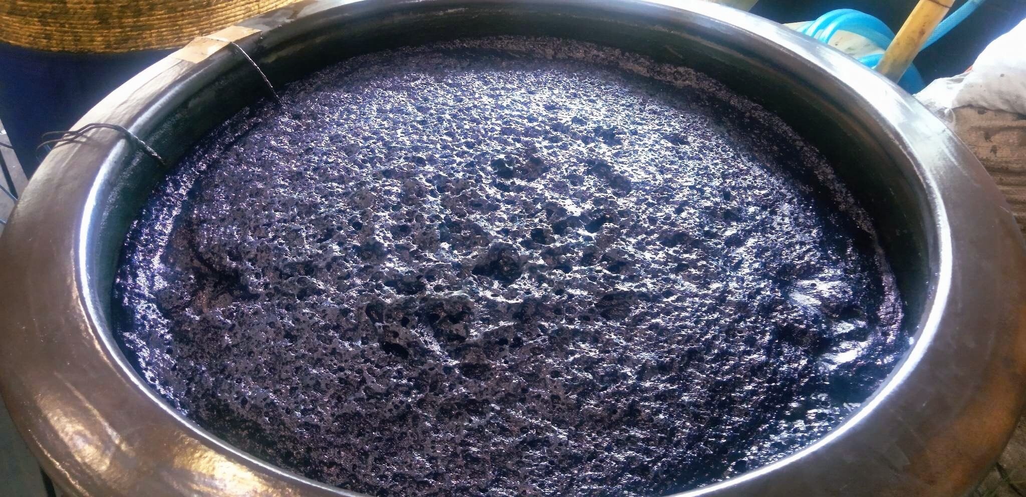 ※オーガニック蒅(すくも)とは、無農薬・無化学肥料で育てた藍草の乾燥葉を100日かけて醗酵させ、一年以上熟成させた藍染の染料のこと