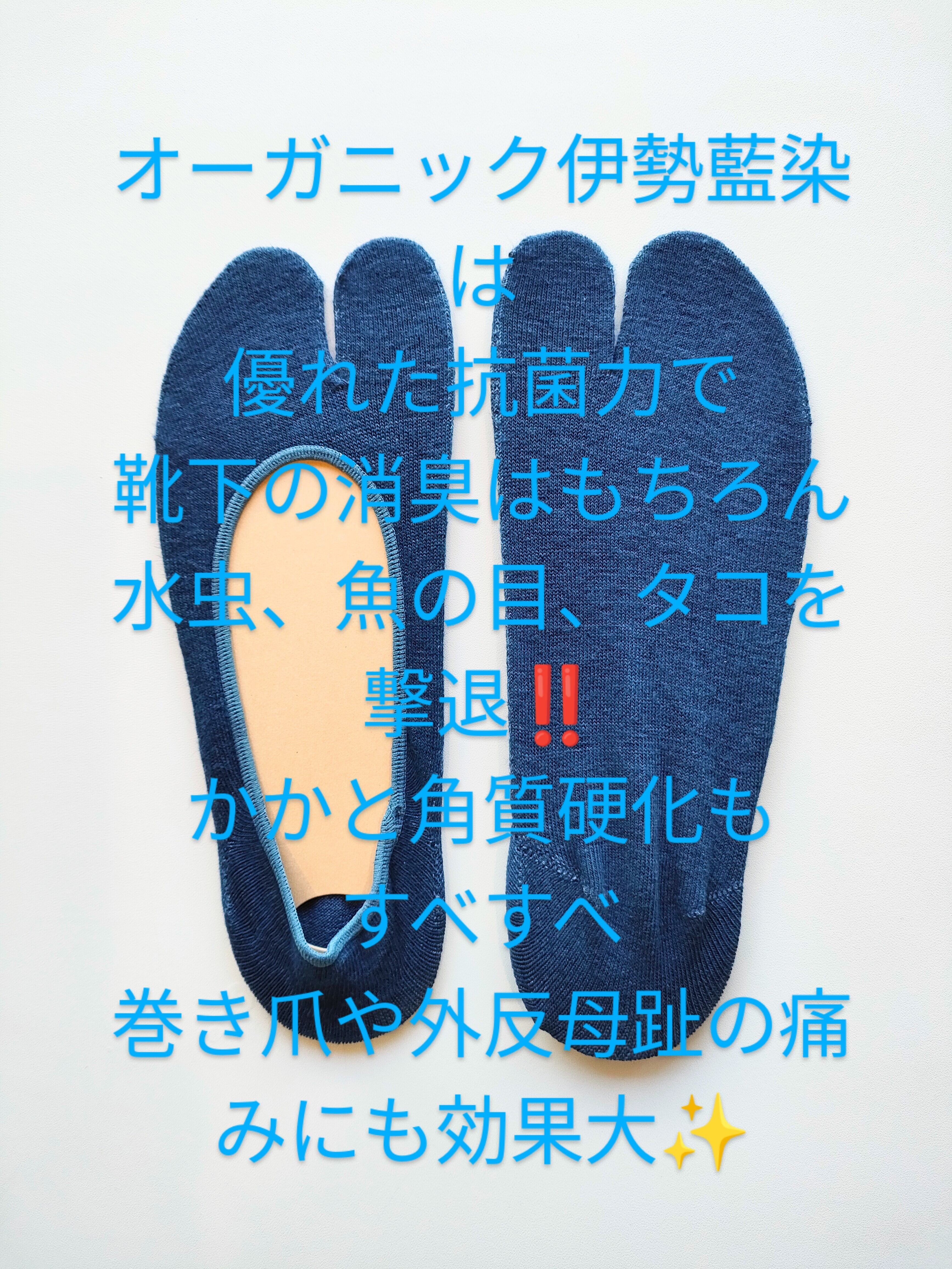 また『オーガニック伊勢藍染』の靴下を履かれる場合は、ケミカルな化粧品や薬、クリームなどは肌に塗布せず、必ず素足に履いてくださいませ。