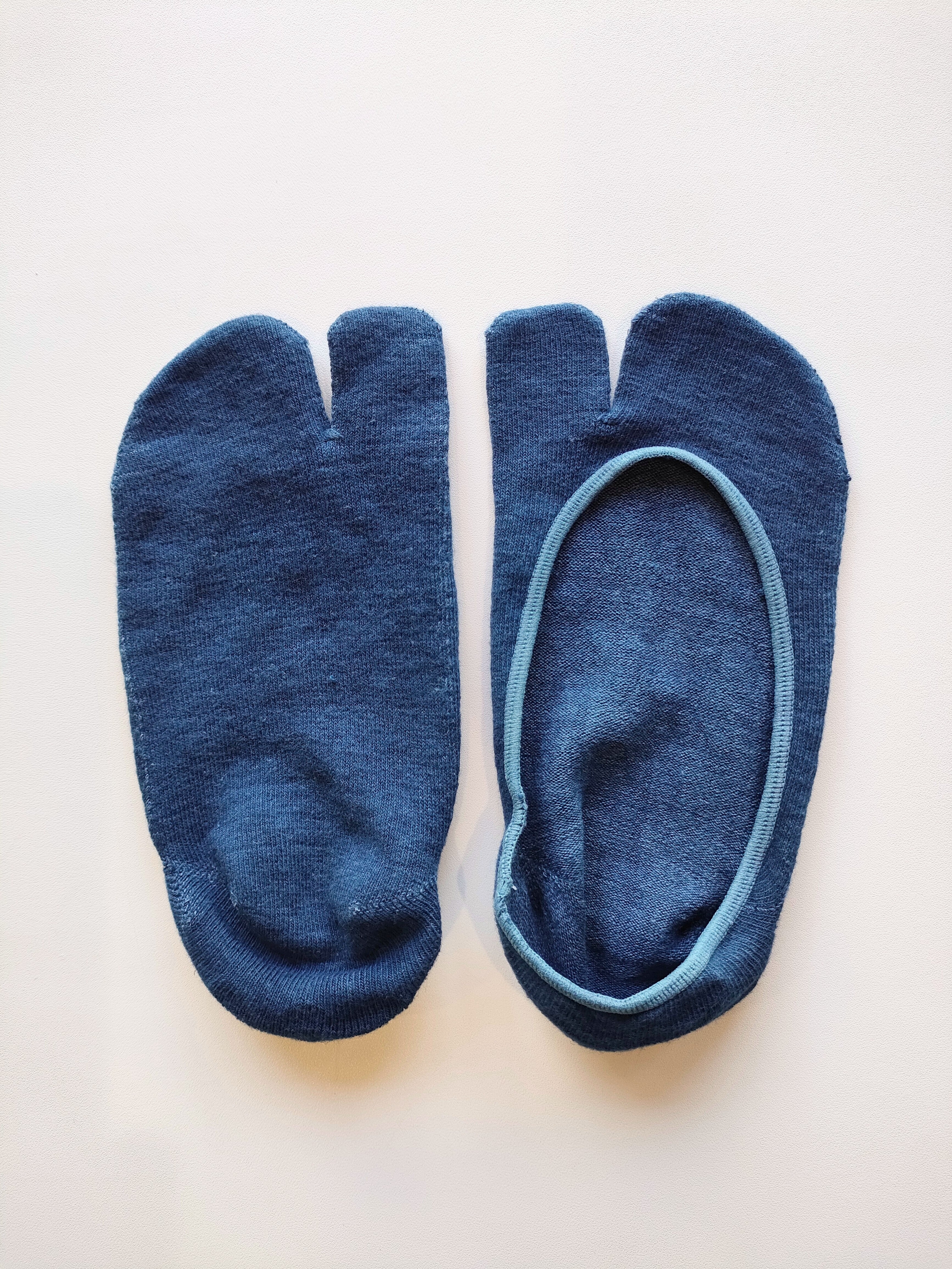 ◆麻を使用したシルク混 足袋型フィットカバー◆ 〜100%オーガニックすくも使用 醗酵建て伊勢藍染~