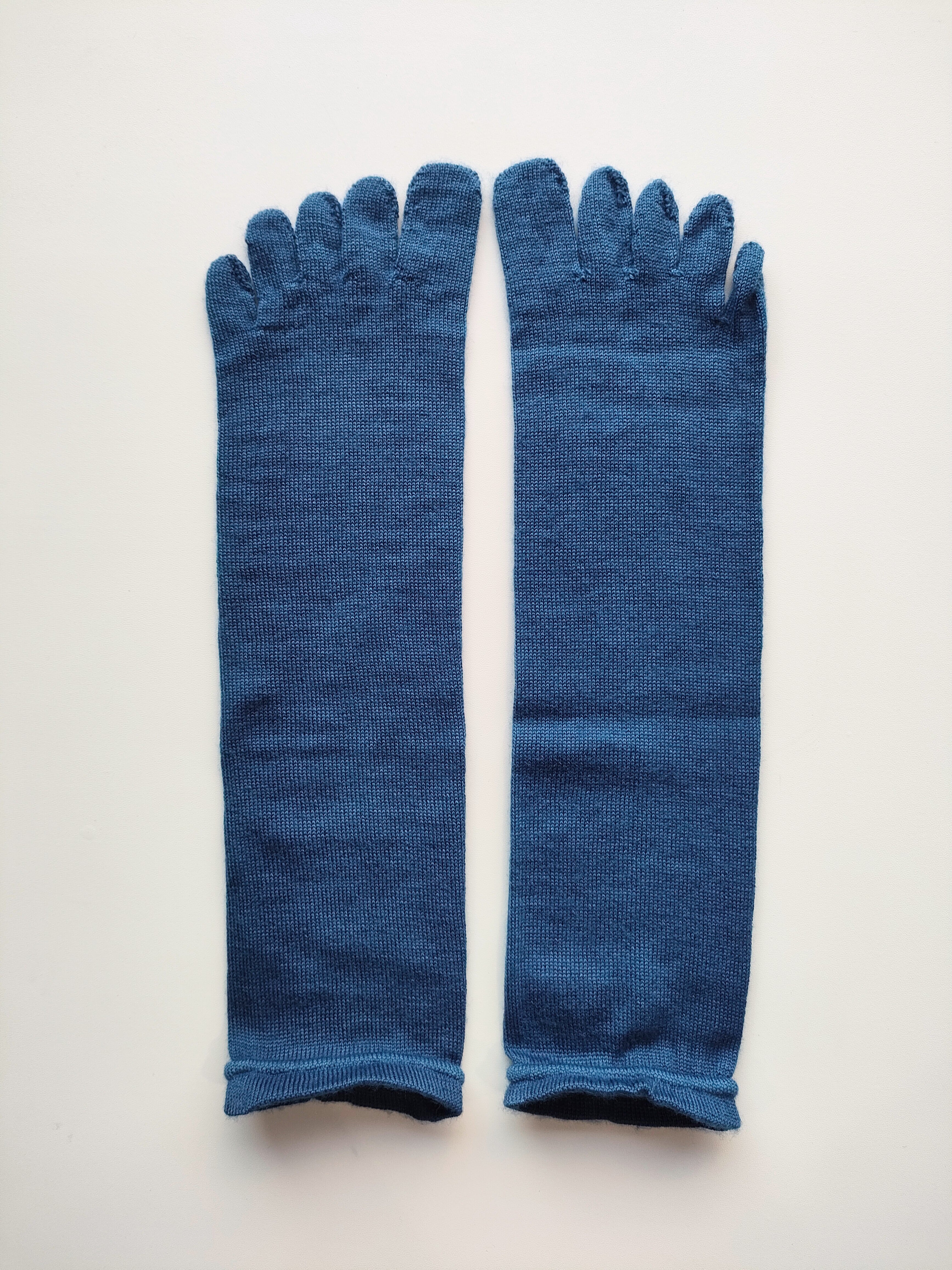 5本指靴下につきましては全ての商品がそうですが、指先の裏側まで1本1本裏返し、何度も丁寧に表と裏を手間ひまかけ染め、非常に贅沢な逸品に仕上げております。