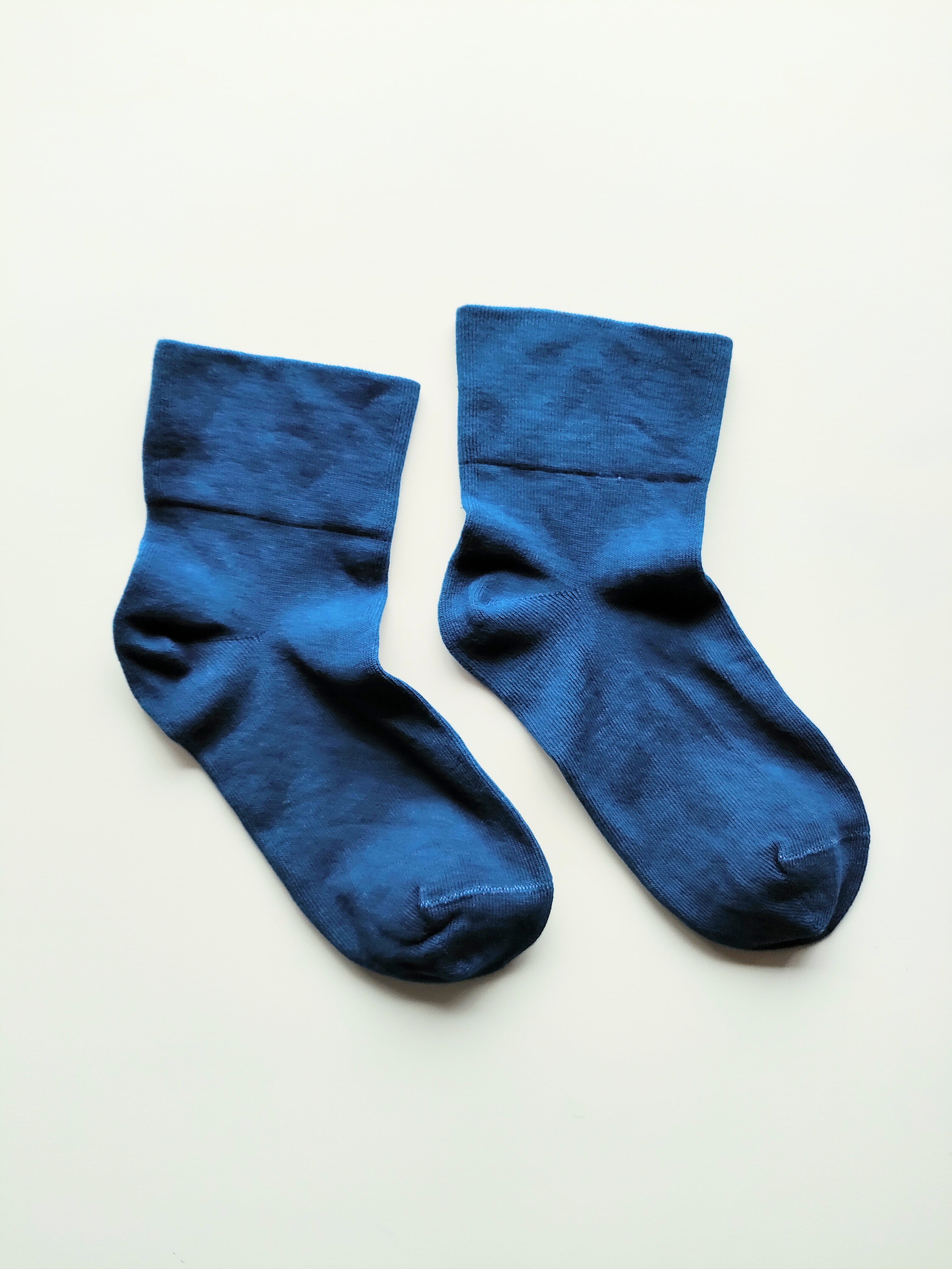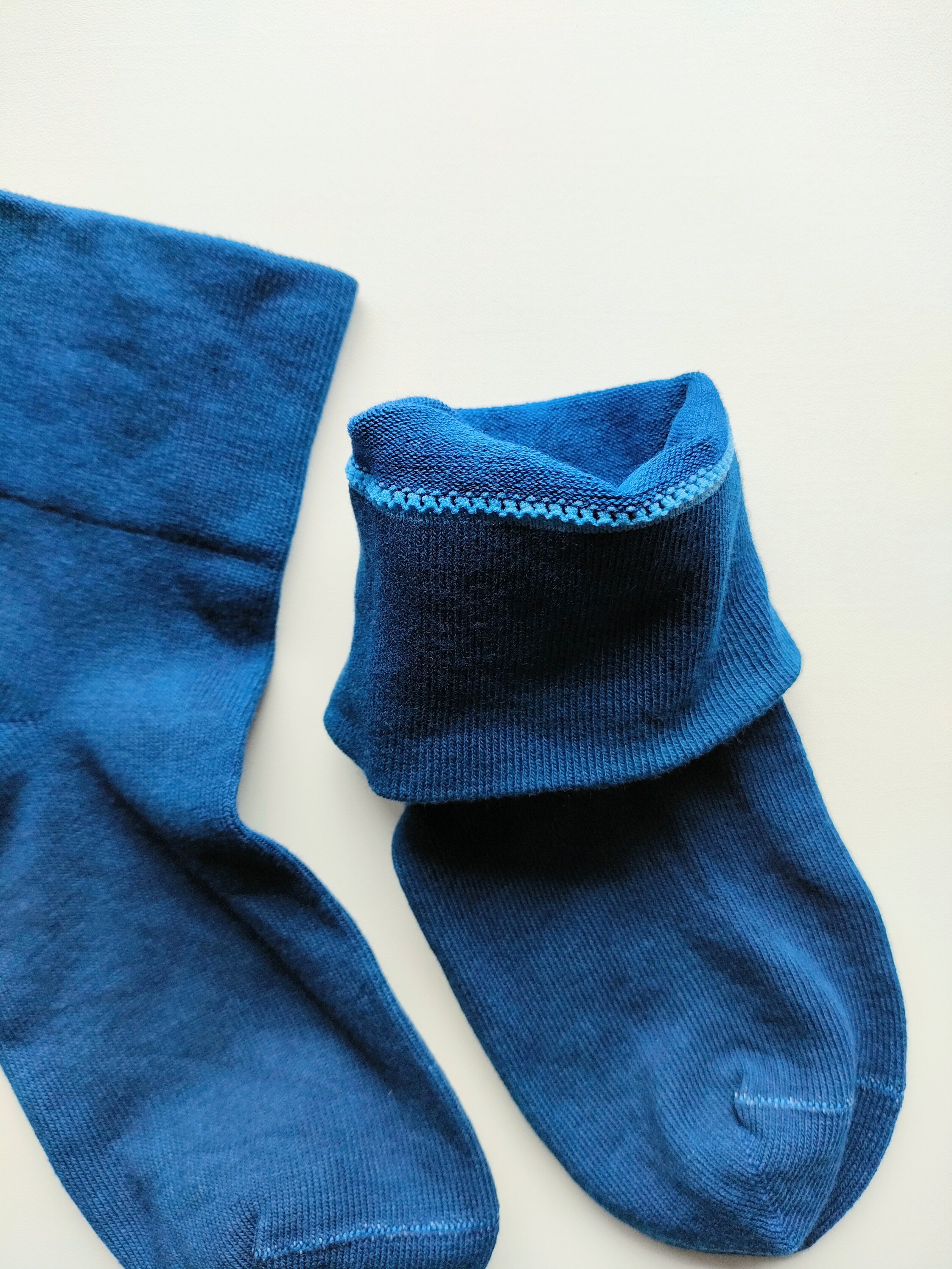 シルクとコットンでゆったりとした履き心地の気持ち良〜い靴下を『オーガニック伊勢藍』で染めました♪