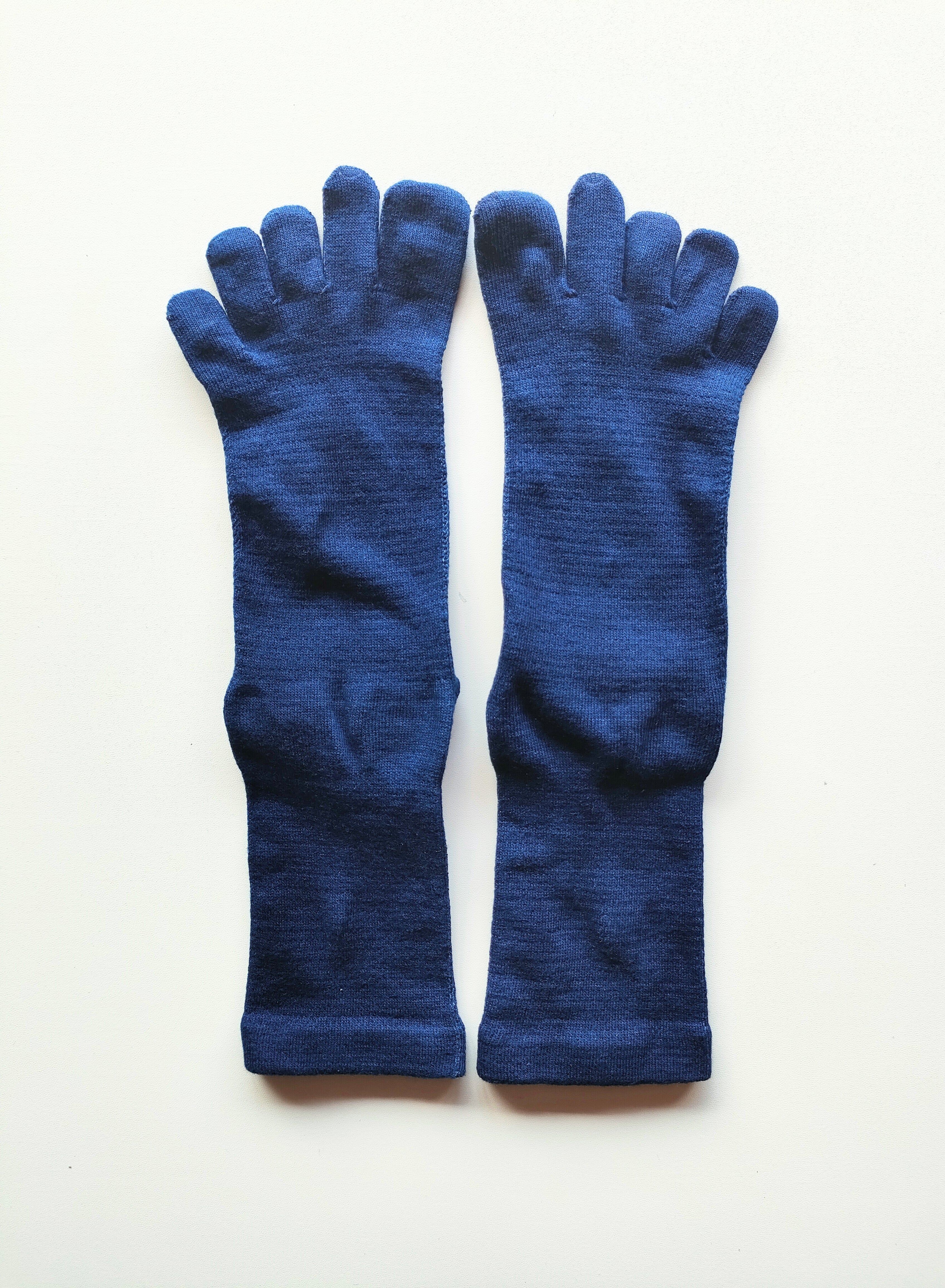 ※素材(シルク)と藍染めの特性上、どちらも摩擦に弱いため、靴下につきましては長くご愛用されたい方は、就寝時のみ履かれることをおススメいたします。