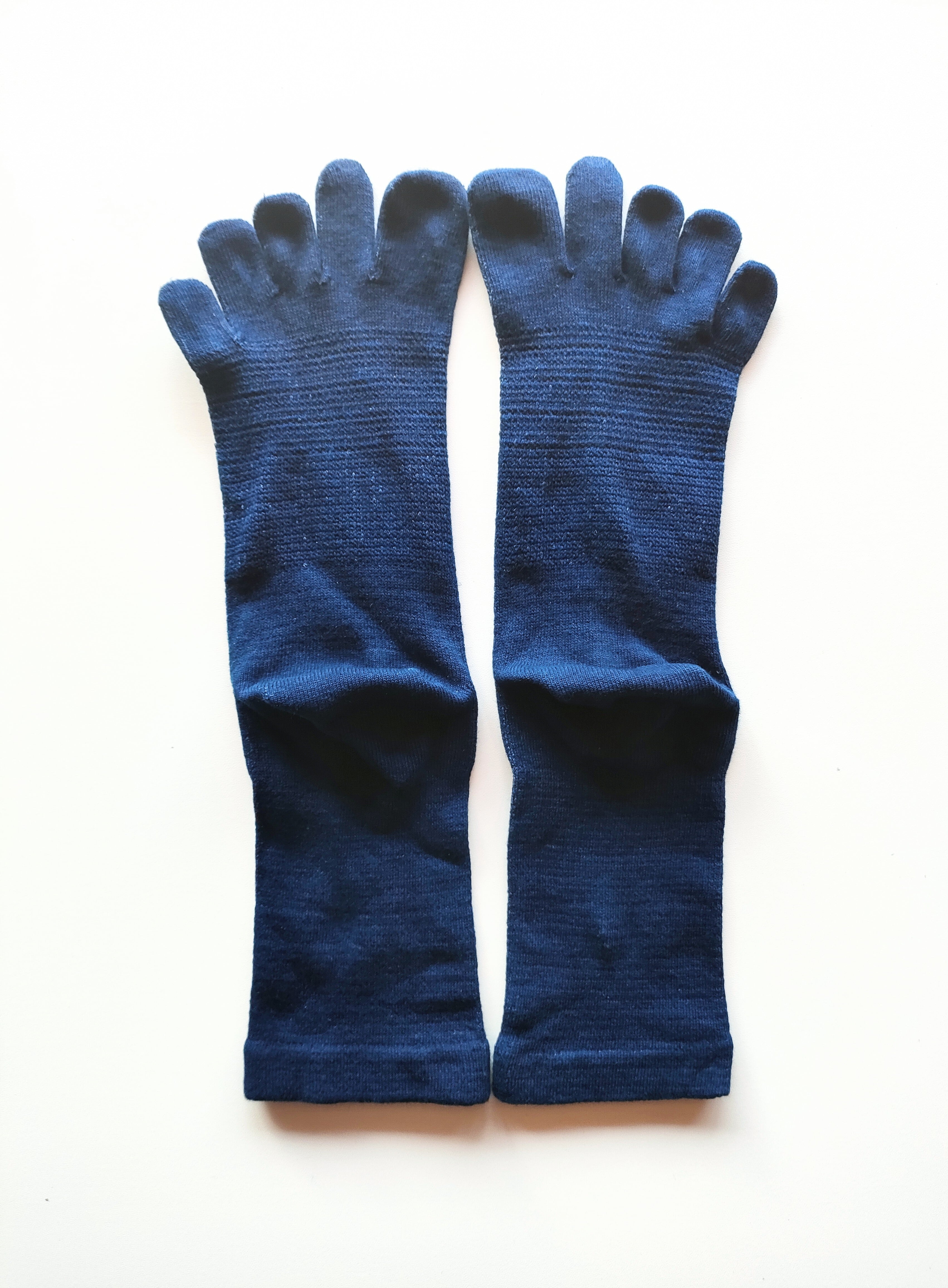 ◆ワイルドシルク&オーガニックコットン5本指靴下(サイズ大きめ丈長タイプ)◆ ~100%オーガニックすくも使用 醗酵建て伊勢藍染~