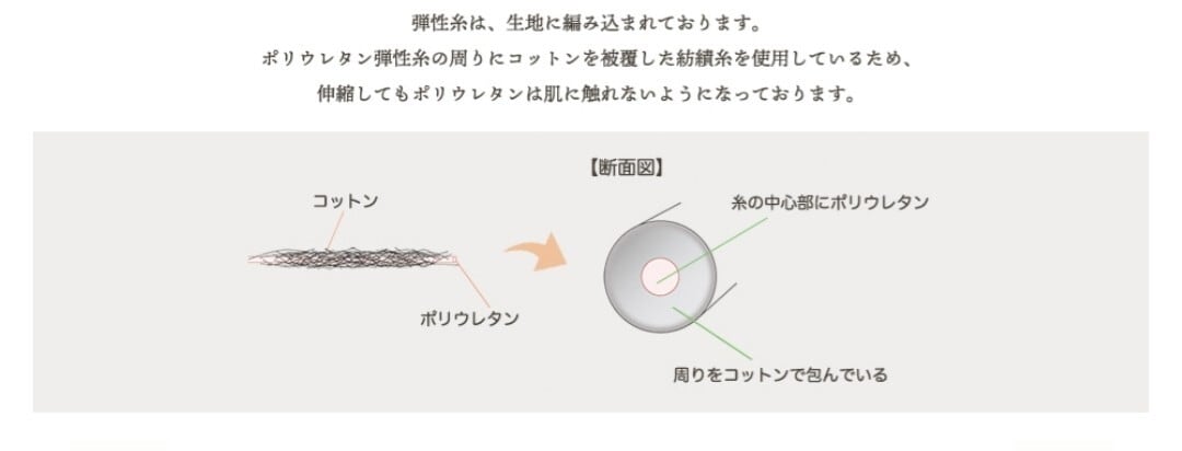 ※混紡糸を使用。編みこみ伸縮糸はコットンに包まれており、肌に触れないよう編み上げています。