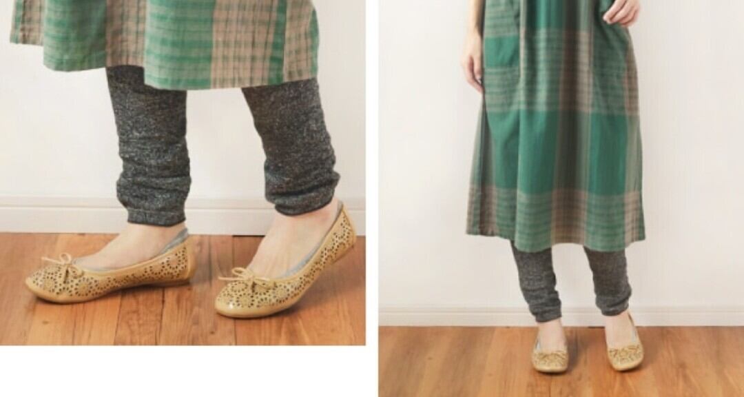 また、脚の先には縫い目がありませんので、写真 9、10枚目のように、スカート下のアウターとして着用することも可能です。